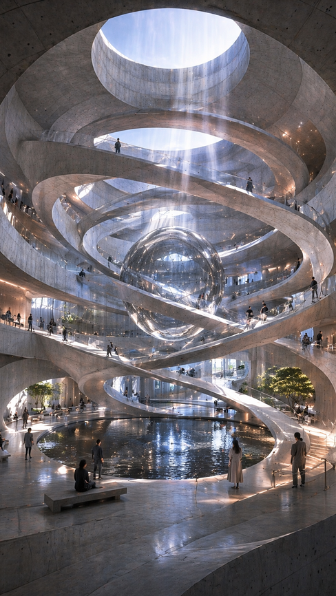 "A space created by the intertwining of infinite circular corridors."